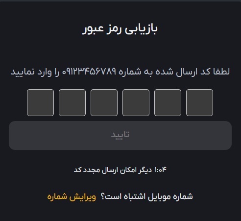 کد امنیتی ارسال شده را وارد کنید.