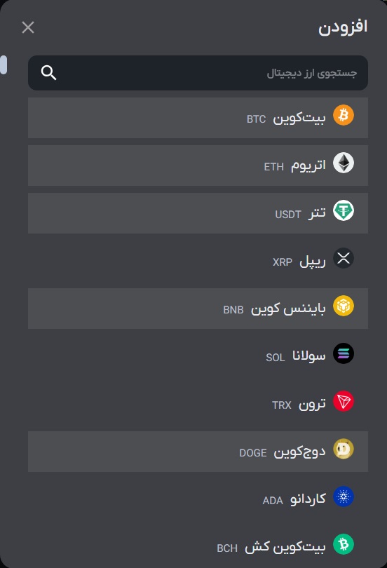 ۳) ارز دیجیتالی دلخواه خود را برای خرید انتخاب کنید.