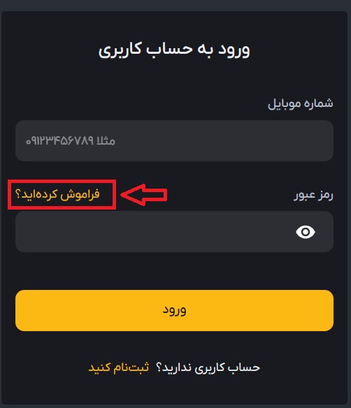 از صفحه ورود، بر روی (فراموش کردهاید؟) کلیک کنید.