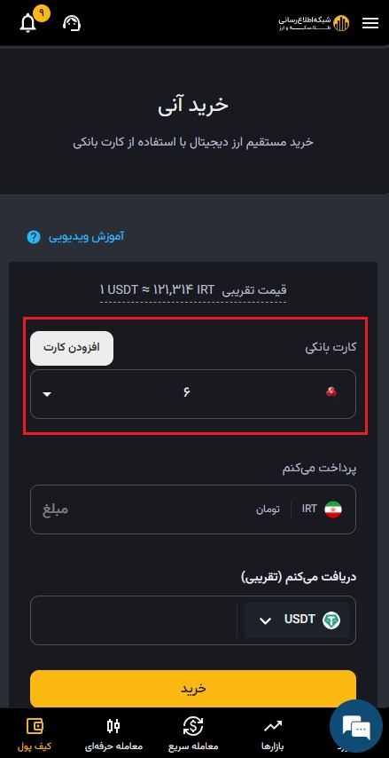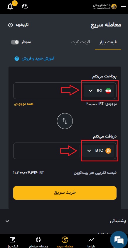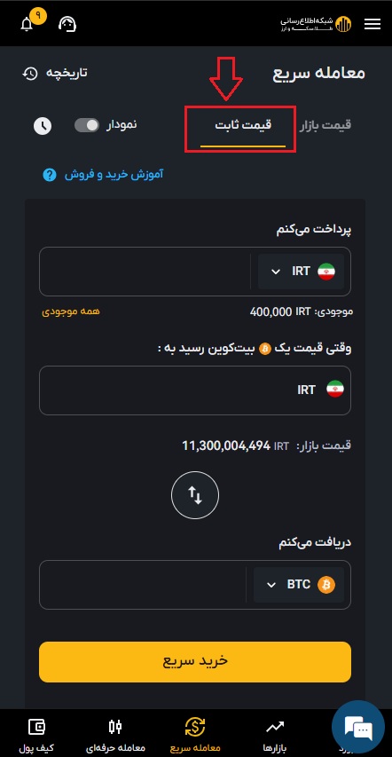 ۴) پس از وارد کردن مقادیر، روی خرید سریع کلیک کنید.