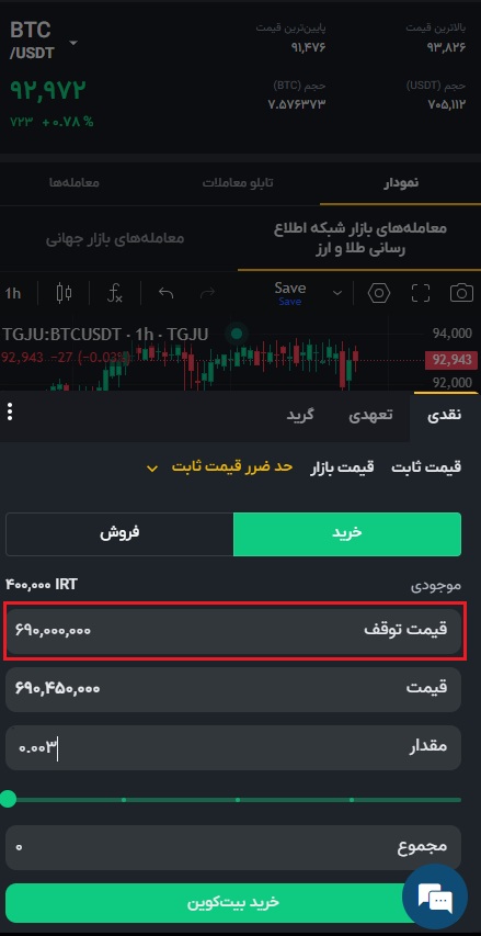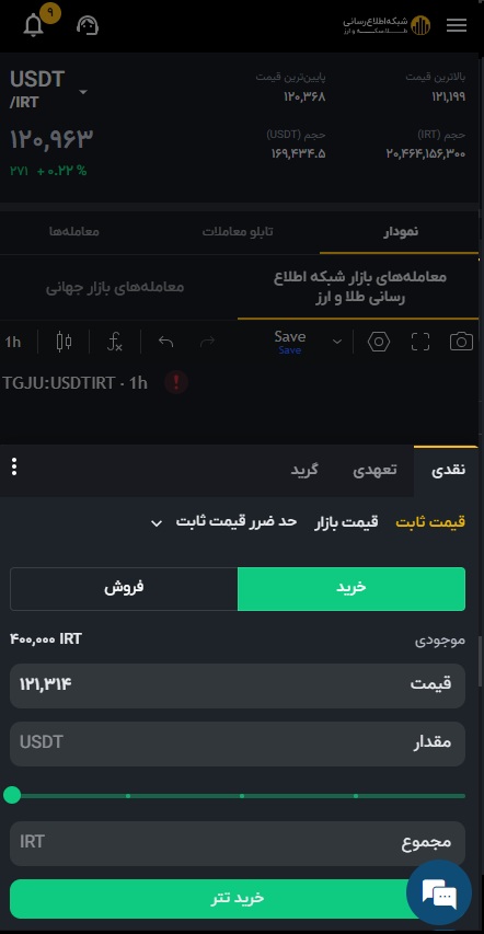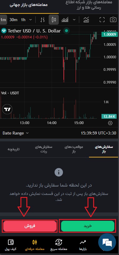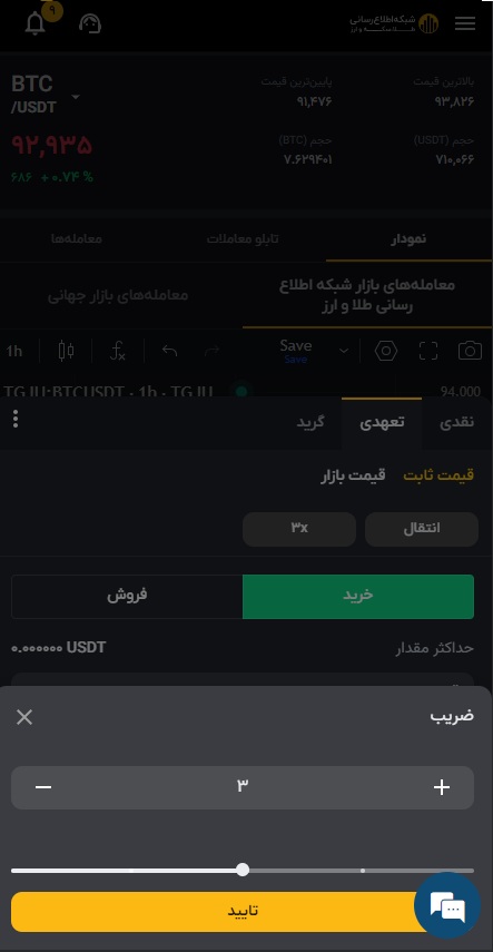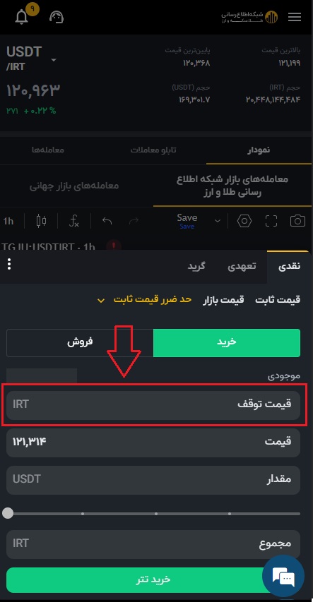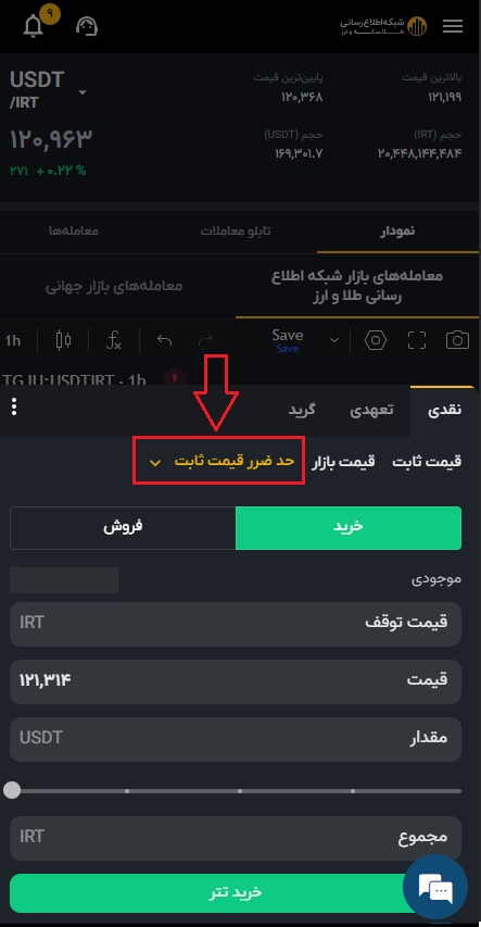 قیمت به تتر نوع سفارش