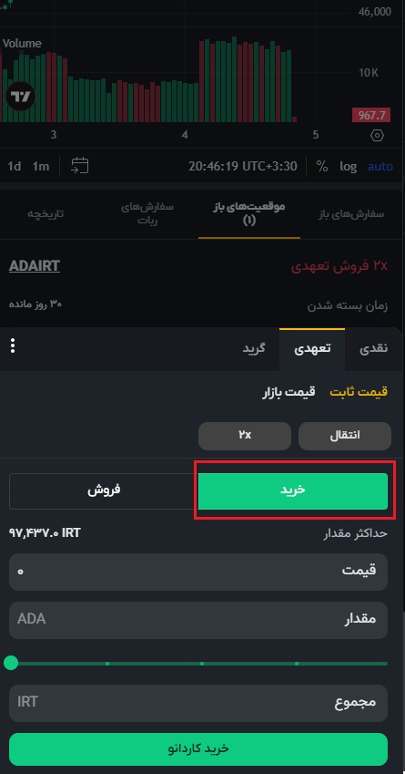 ۵) پس از ثبت مقدار، گزینه خرید را انتخاب کنید.