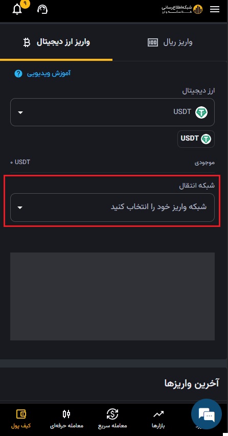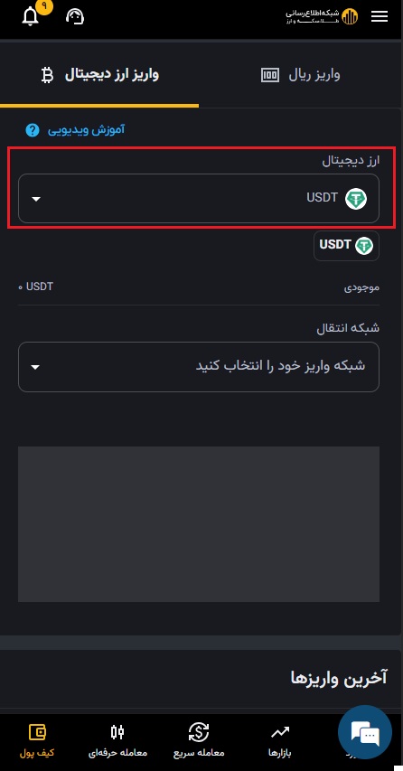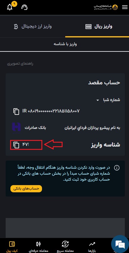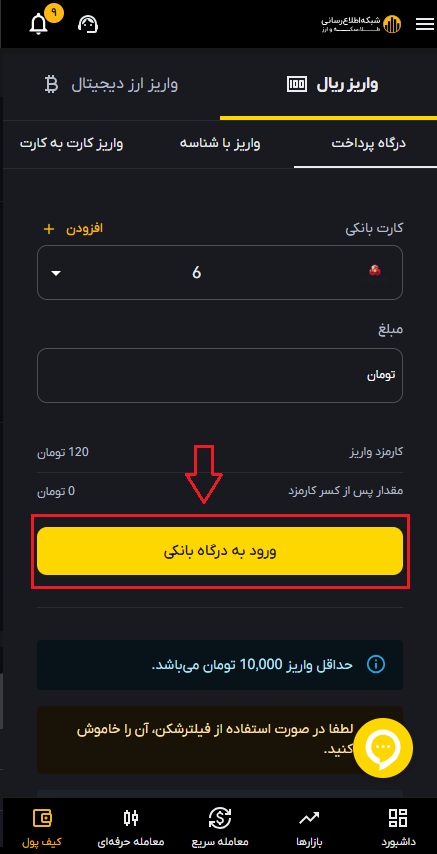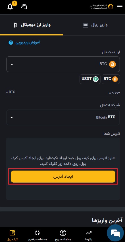 فرآیند واریز ریال در صرافی رمز ارز شبکه اطلاع رسانی طلا و ارز بسیار ساده است و کافی است که ابتدا اطلاعات شماره کارت بانک مورد نظر خود را وارد کنید و سپس مقدار تومان مدنظرتان را به کیف پول شخصی صرافی رمز ارز شبکه اطلاع رسانی طلا و ارز واریز نمایید. برای واریز ارز دیجیتال به کیف پول خود روی گزینه واریز ارز دیجیتال کلیک کنید.