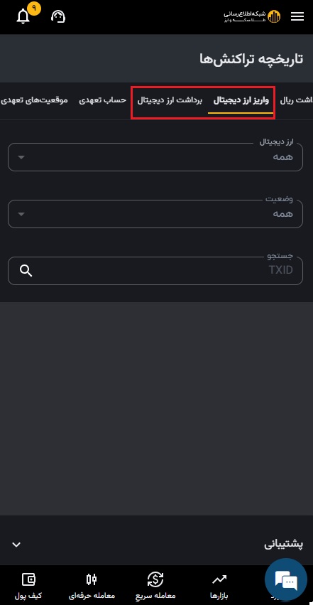 برای بررسی کارمزد انتقال هر ارز روی شبکه های مختلف، می توانید به جدول کارمزد ها مراجعه کنید یا در بخش برداشت ارز دیجیتال، پس از انتخاب ارز و شبکه مورد نظر، میزان کارمزد را مشاهده نمایید.