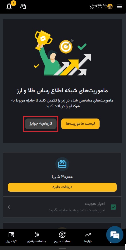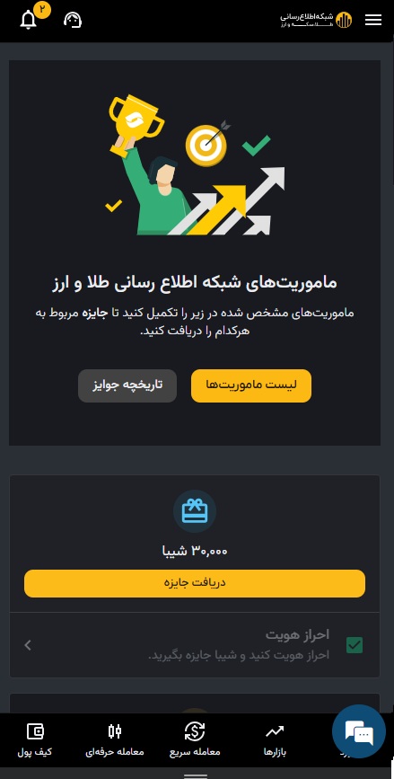 صرافی رمز ارز شبکه اطلاع رسانی طلا و ارز برای آشنا کردن کاربران با امکانات و سرویس های مختلف خود، مجموعهای از ماموریتها طراحی می کند. با انجام کامل یا بخشی از این موارد، پاداش مشخصی به کاربر تعلق میگیرد. این ماموریتها معمولاً شامل مواردی مثل تکمیل مراحل احراز هویت، انجام خرید یا فروش، استفاده از یک ویژگی خاص و موارد مشابه هستند.