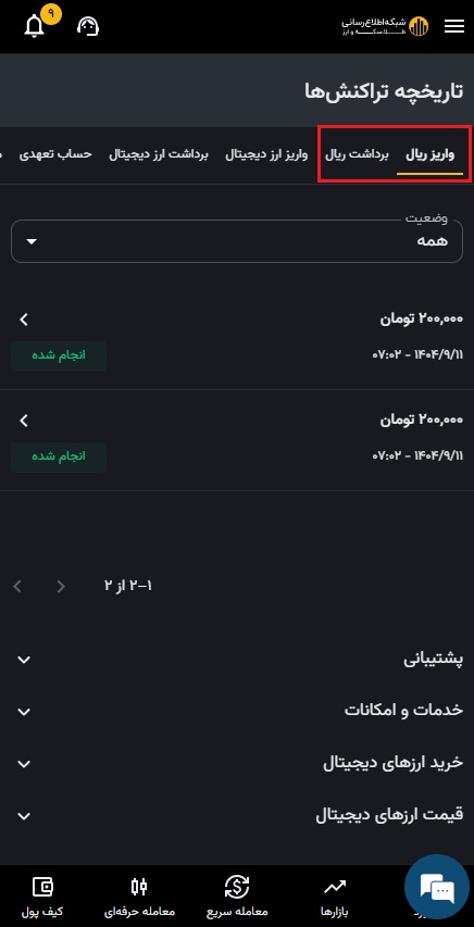 شما می توانید ریال یا ارزهای دیجیتال را به کیف پول شخصی خود در صرافی رمز ارز شبکه اطلاع رسانی طلا و ارز واریز کنید. پیشنهاد می کنیم قبل از انجام این کار، قسمت آموزش واریز ریال و آموزش واریز ارز دیجیتال را مشاهده نمایید.
