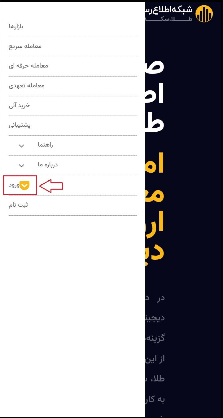 در اپلیکیشن از منوی بالا سمت چپ بر روی سه خط سپس روی ورود کلیک کنید.