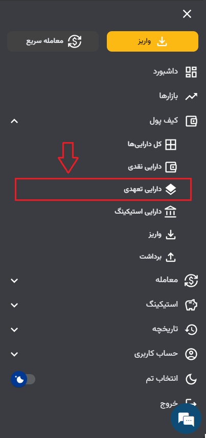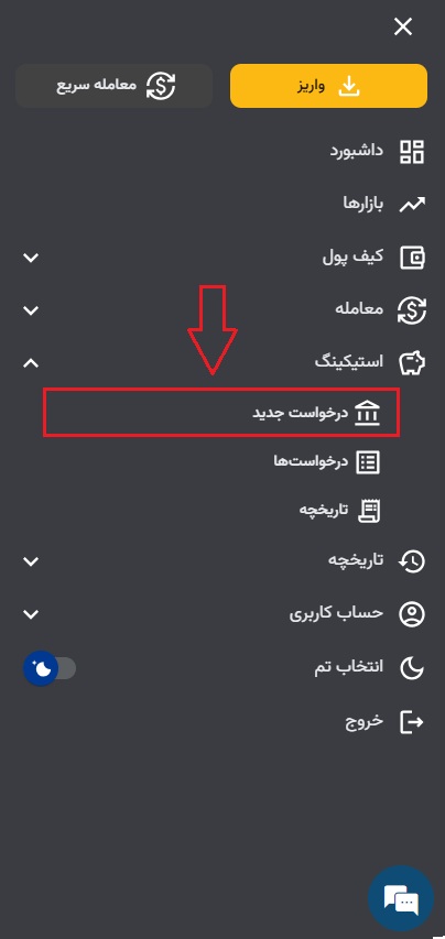 شما می توانید با استیک کردن داراییهای خود در یک بازه زمانی مشخص، پاداش دریافت کنید. برای دریافت پاداش، ابتدا دارایی مورد نظر برای استیک کردن را انتخاب کنید. پس از ثبت و نهایی شدن درخواست استیکینگ، سود به صورت روزانه به شما تعلق میگیرد. توجه داشته باشید که پاداش شما به همان ارز دیجیتالی که استیک کرده اید پرداخت می شود و شامل ریال یا تتر نمی شود.