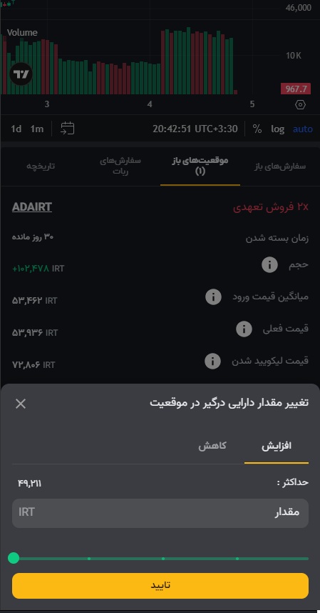 بنابراین طبق این تنظیمات، قیمت سفارش اول ۴۲,۵۸۰ و قیمت سفارش دوم ۳۸,۳۲۲ تتر خواهد بود.